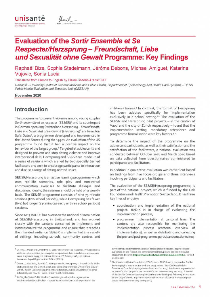 Evaluation of the Sortir Ensemble et Se Respecter/Herzsprung – Freundschaft, Liebe und Sexualität ohne Gewalt Programme: Key Findings