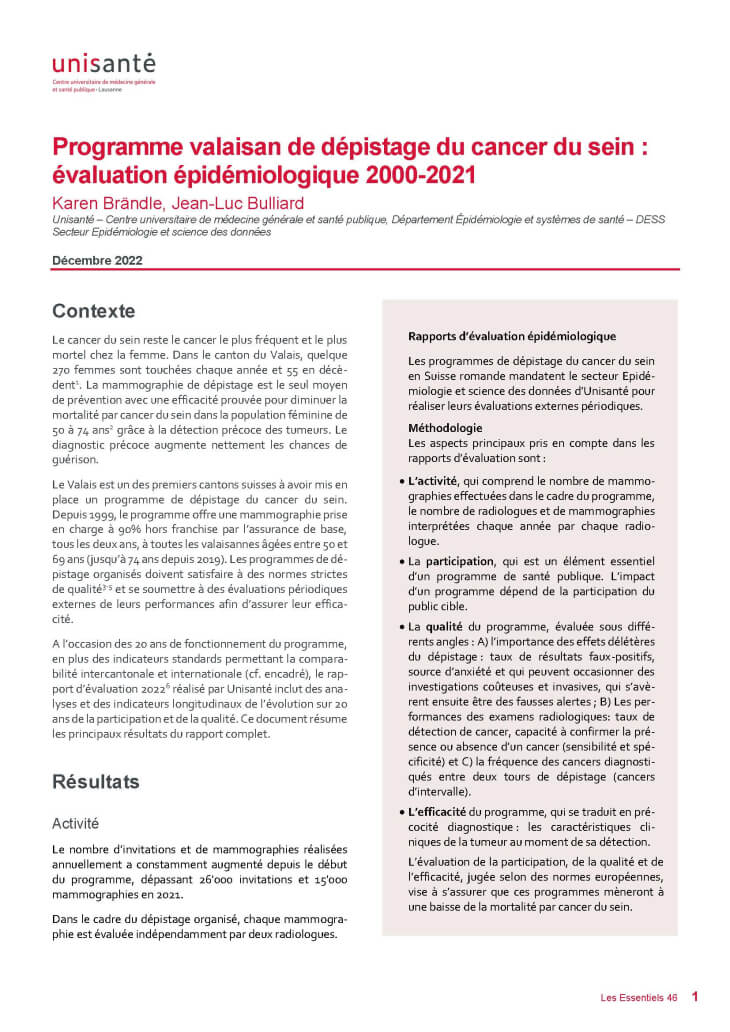 Programme valaisan de dépistage du cancer du sein: évaluation épidémiologique 2000-2021