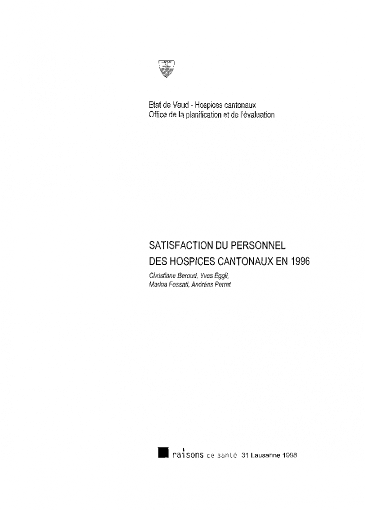 Satisfaction du personnel des Hospices cantonaux en 1996