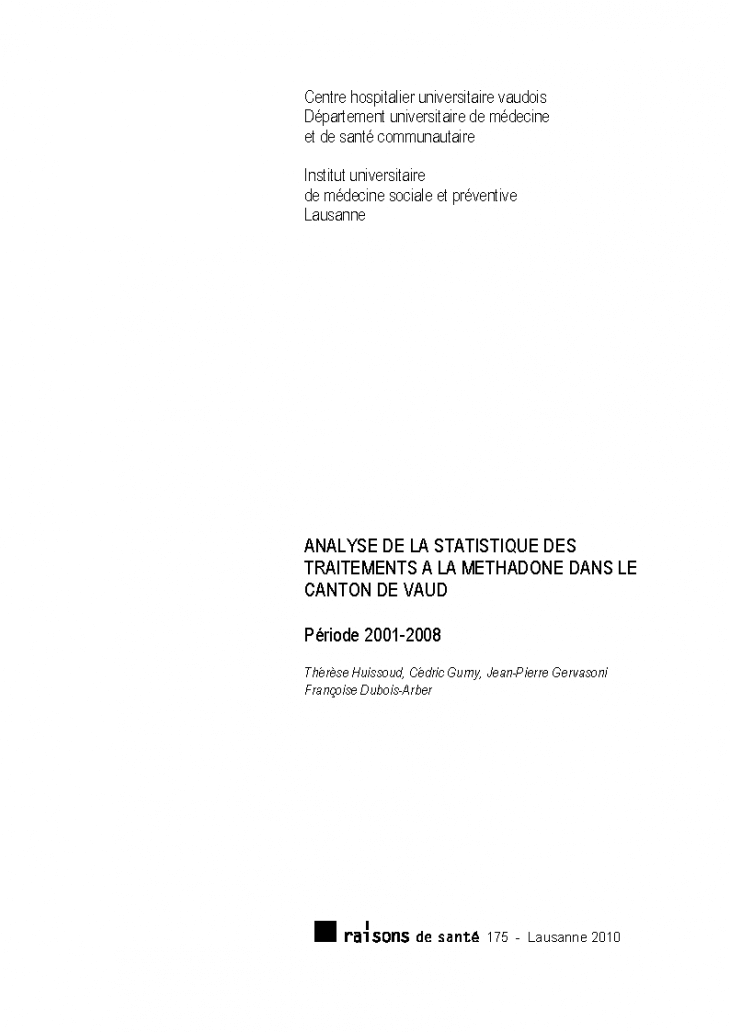 Analyse de la statistique des traitements à la méthadone dans le canton de Vaud: période 2001-2008