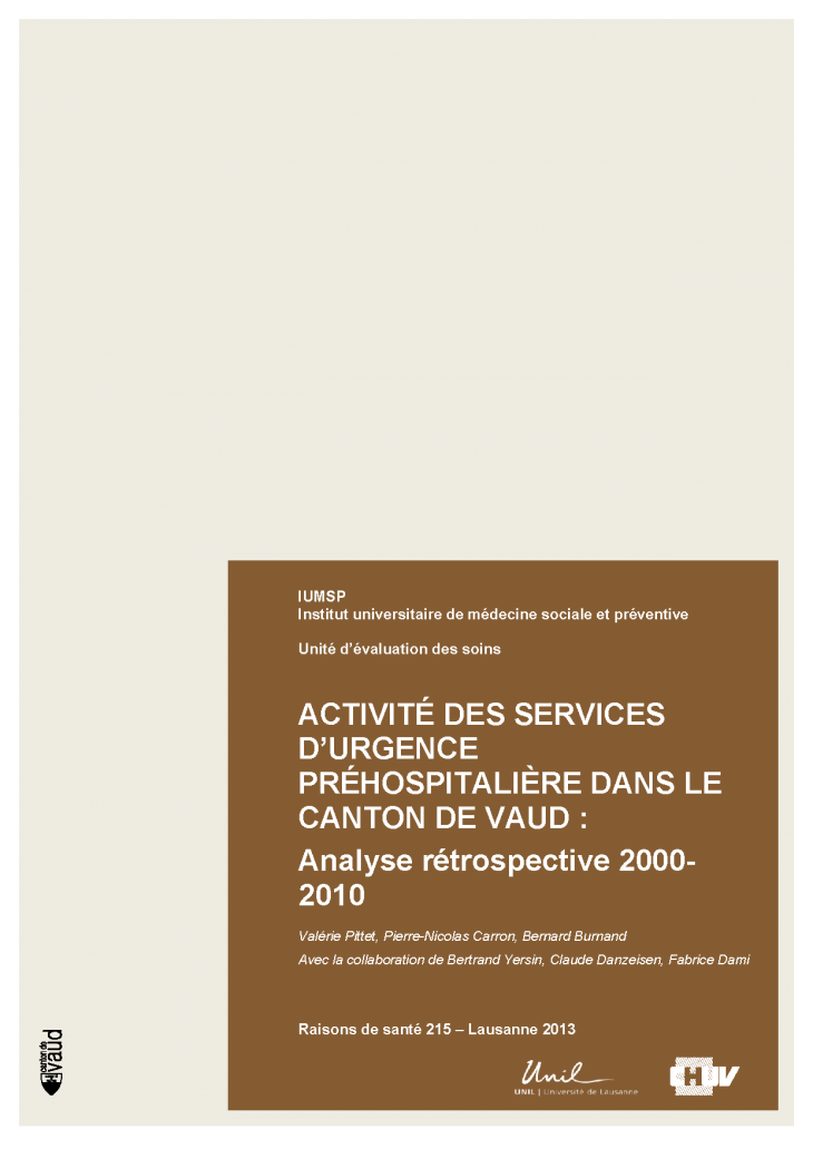 Activité des services d'urgence dans le canton de Vaud: analyse rétrospective 2000-2010