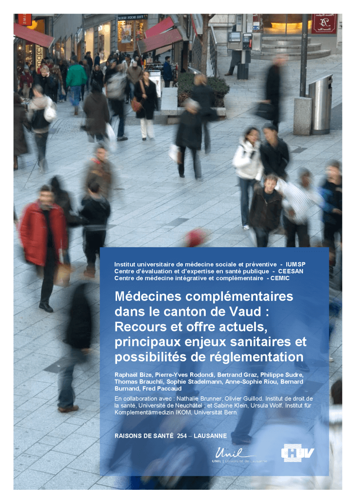 Médecines complémentaires dans le canton de Vaud: Recours et offre actuels, principaux enjeux sanitaires et possibilités de réglementation