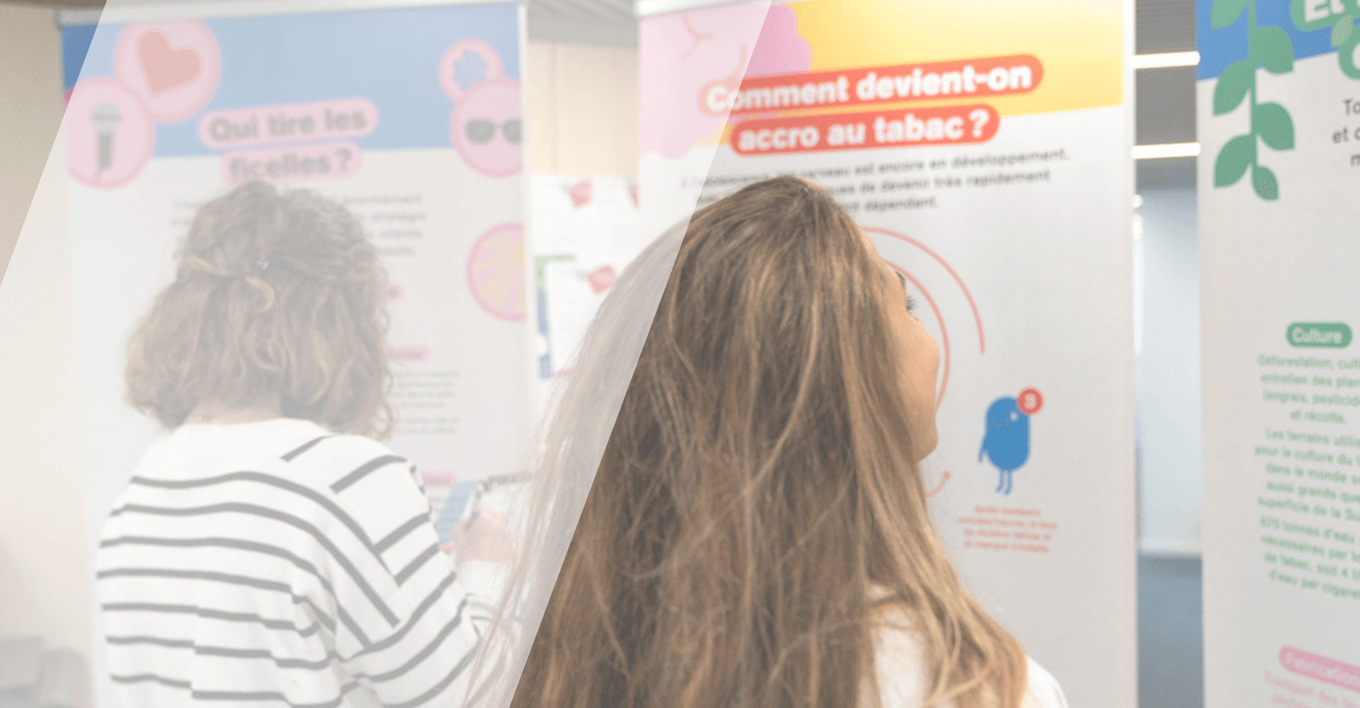 Permettre d’ouvrir la discussion sur des sujets proches des intérêts des jeunes et les sensibiliser au tabac comme phénomène de société. L’exposition « Le tabac en question » aborde différentes thématiques liées au tabagisme, telles que le prix des cigarettes, les différentes manières de consommer de la nicotine (par exemple les puffs), le processus de dépendance, les stratégies marketing et la manipulation de l’industrie ou encore l’impact sur l’environnement.